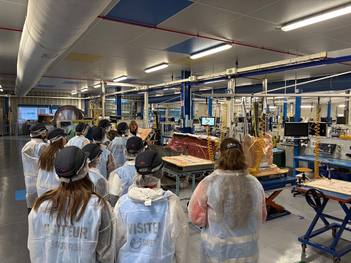 "Très belle visite de ce site industriel spécialisé dans l'aéronautique pour ces 21 filles du collège Jean Moulin d'Uckange et leurs deux accompagnatrices.