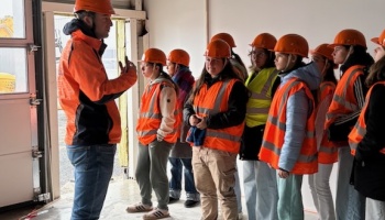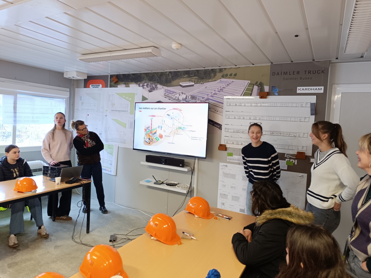 21 filles de 4ème et 3ème et leurs 2 professeures du collège Robert Aubry de Ligny-en-Barrois sont venues, à pied, pour visiter l'imposant chantier de Bouygues-Construction sur le site de Daimler à Ligny-en-Barrois.